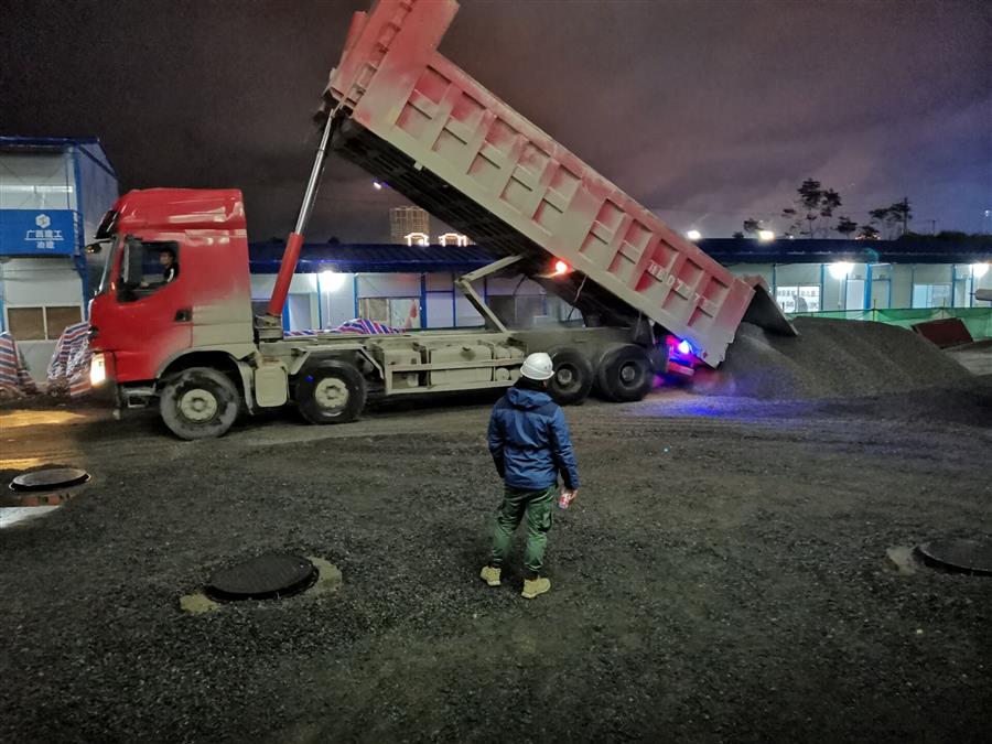 為全力沖刺四季度,項目部實行“快馬加鞭、保質(zhì)保量、人停機不停、晝夜料不停!”的搶工模式,在保證安全和質(zhì)量的前提下,項目部全體成員搶抓施工黃金期,全力以赴推進項目建設。為加快項目建設,項目部反復討論研究制定了科學的施工計劃,合理安排人力物力。面對晚間要拉運回填土方和石料的問題,項目部采取人員輪流值班,料來人在,統(tǒng)一指揮的措施,做到合理配置堆放,減少二次運輸,提高工作效率。
