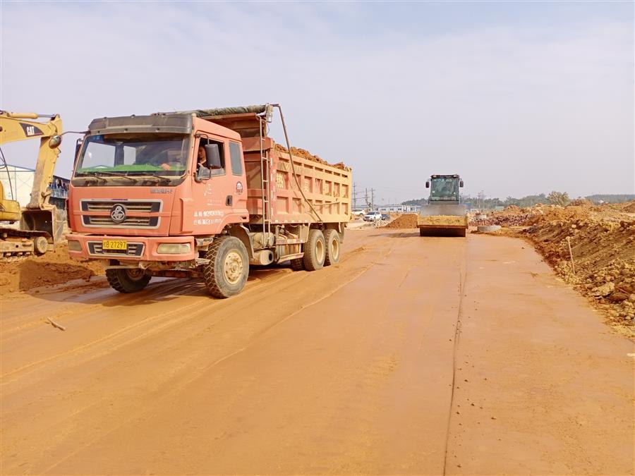 在白露村周邊支路路網(wǎng)工程-4標段(規(guī)劃路8)項目施工現(xiàn)場,挖掘機、土方運輸車、壓路機等工程機械在工地上連續(xù)運轉(zhuǎn)。工作人員加班加點作業(yè),充分利用施工黃金季節(jié),全面推進項目建設。
