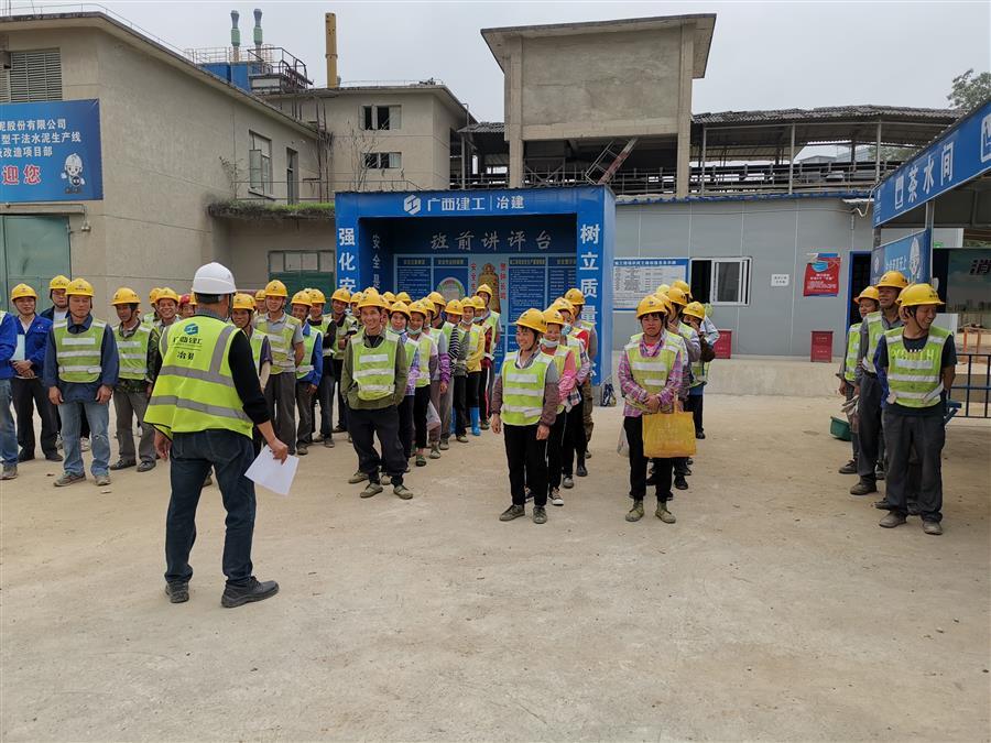 “作業(yè)人員進(jìn)入施工現(xiàn)場必須正確佩戴安全帽……”。在魚峰水泥技改項(xiàng)目施工現(xiàn)場,這樣手持小喇叭的安全員隨處可見,他們時(shí)刻為施工人員宣傳安全知識(shí),為項(xiàng)目安全生產(chǎn)保駕護(hù)航。