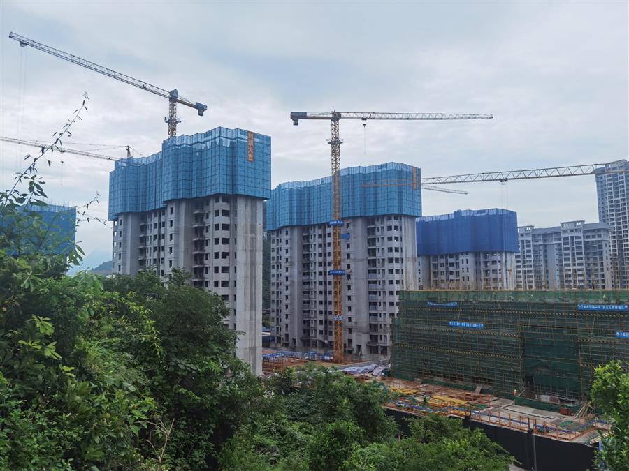 目前,該項目已有9棟住宅樓結(jié)構(gòu)封頂,7棟高層主樓即將完成主體結(jié)構(gòu)施工,正在有序進(jìn)入裝修階段。