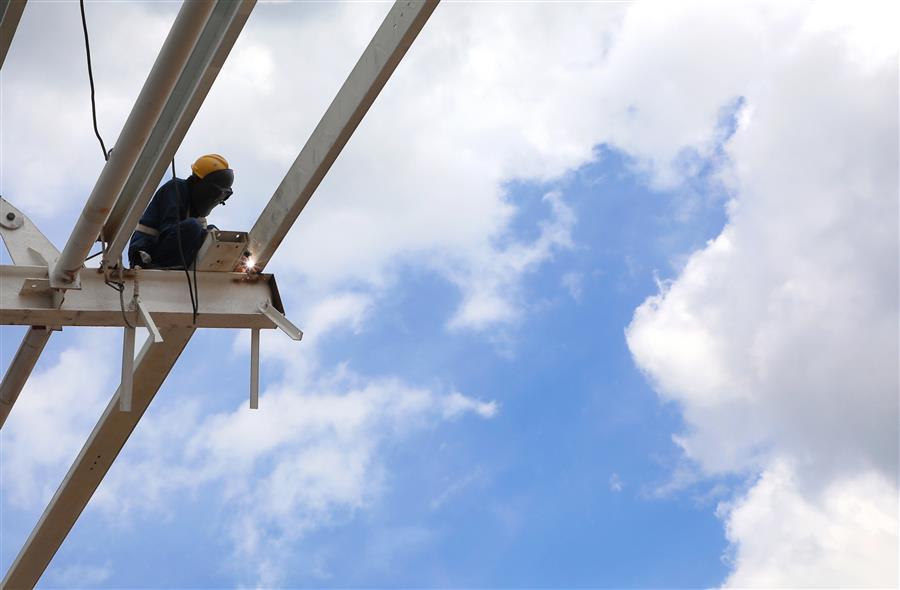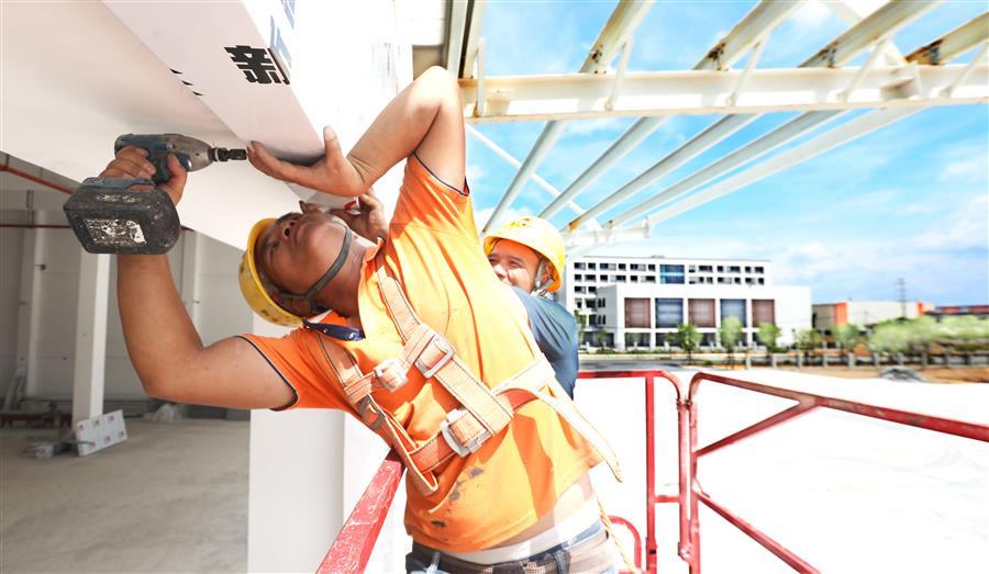 炎炎夏日,擋不住項目推進的步伐。7月20日,由冶建公司承建的柳州鐵路港核心區(qū)(西鵝鐵路物流中心)倉儲配一體庫項目施工現(xiàn)場,皮膚黝黑的覃五偉在工友的配合下,迅速而準(zhǔn)確地把一塊塊外立面板材安裝到位,與此同時在該項目現(xiàn)場、不同作業(yè)崗位上的,還有幾十名工人,正在揮汗如雨地工作,大家克服困難、齊心協(xié)力施工,就是為了盡快完成項目的收尾工作,早日交付。
