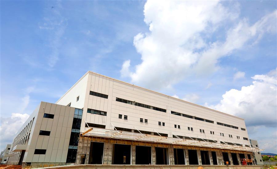 該項目負(fù)責(zé)人莫劍生介紹,倉儲配一體庫主要建設(shè)6棟庫房,目前項目主體基本建成,正緊張有序收尾。為了加快項目進度,項目部在做好防暑降溫、安全施工等保障措施的同時,采取多班組、多工種在不同的庫房交叉作業(yè),目前工地上有七八個班組在施工,施工內(nèi)容包括外立面、擋雨棚、通風(fēng)管、地面硬化施工等。