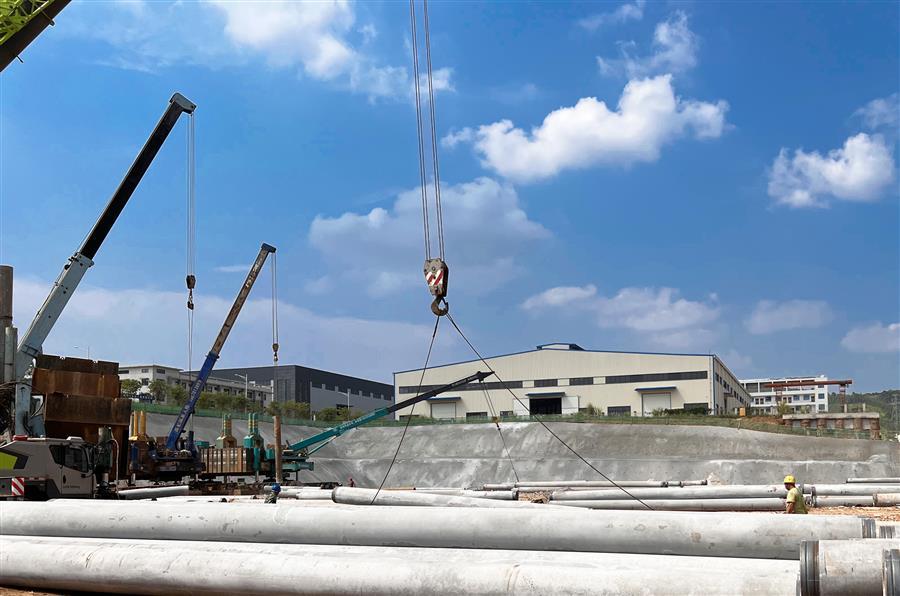 截至目前,項(xiàng)目已完成土方開(kāi)挖量4萬(wàn)立方米,完成基坑安全防護(hù)、試樁靜載試驗(yàn)以及項(xiàng)目東側(cè)人員通道水溝回填等工作,完成產(chǎn)值近5000萬(wàn)元。