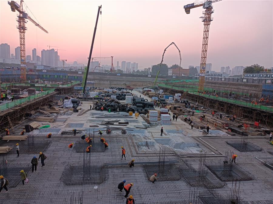 為加快推進(jìn)項(xiàng)目建設(shè),項(xiàng)目部一手抓防疫,一手抓建設(shè)。在做好疫情防控的基礎(chǔ)上增加作業(yè)人員、增加作業(yè)面,采取平面分區(qū)、分段流水交叉作業(yè)施工;加強(qiáng)各工序之間的有效銜接,充分利用施工面做到均衡施工;加大材料設(shè)備的投入,提前購置充足的機(jī)械設(shè)備,采取新材料、新技術(shù)減少耗材。項(xiàng)目每天進(jìn)場的勞務(wù)人員達(dá)300余人次,有時(shí)單個(gè)施工區(qū)域就達(dá)40余人作業(yè)。項(xiàng)目管理人員團(tuán)結(jié)協(xié)作、集體攻關(guān),在施工現(xiàn)場日夜值守,吹響了“決戰(zhàn)四季度”的沖鋒號(hào)角。