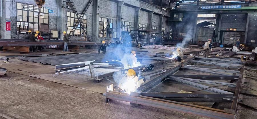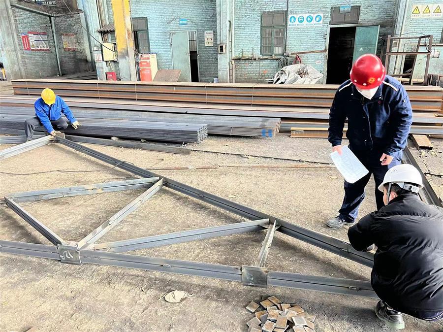廣西柳鋼環(huán)保公司鋼渣廠1#廠房氣窗及3-11#柱屋面鋼結構與彩瓦更換工程鋼結構預制加工現(xiàn)場,焊接“火花”不斷,工人作業(yè)有序。據了解該項目屬于檢修項目,工期緊,需提前加工預制完后,才能拆除現(xiàn)場舊屋架,現(xiàn)場生產環(huán)境高溫腐蝕嚴重,為了確保項目施工安全,施工班組每天進場前都要進行安全交底。當前,該項目完成5片屋架組隊,2跨天窗主體鋼框架,所有構件制作完成,整體已完成年前計劃進度約85%,加工過程中甲方隨機抽檢均合格。