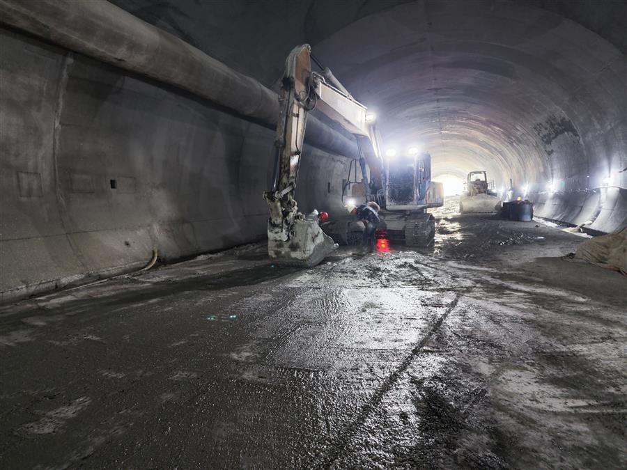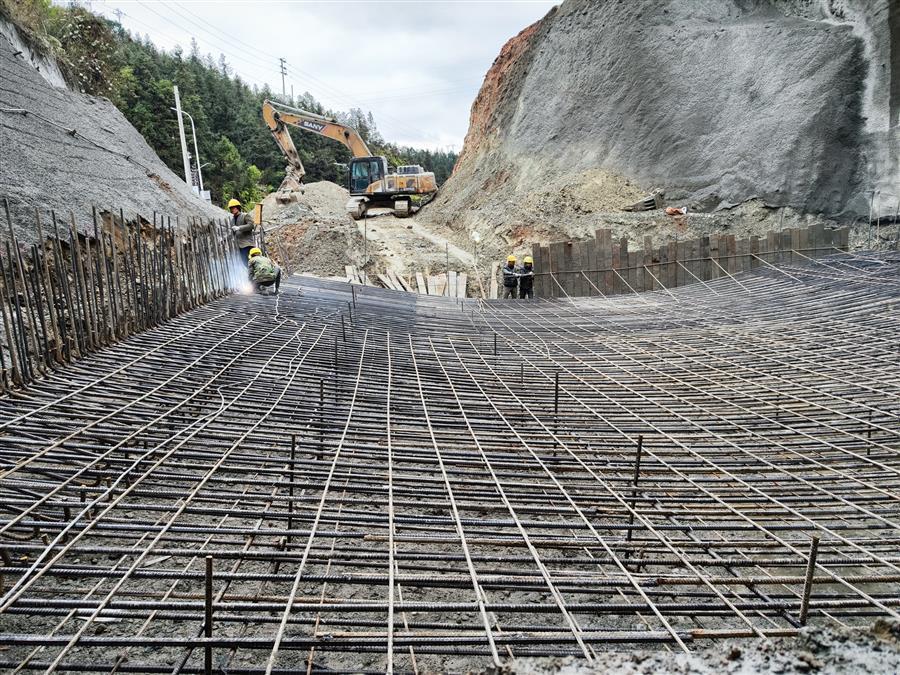 在施工現(xiàn)場,機(jī)器轟鳴,挖掘機(jī)正在對(duì)隧道明洞部分的土方進(jìn)行開挖,出渣車有序作業(yè)外運(yùn)渣土;工人們正有條不紊地焊接、搭建地連墻鋼筋籠;在隧道深處,一臺(tái)挖掘機(jī)在操作人員的操控下,正揮動(dòng)著“手臂”,配合著工人在對(duì)隧道路面做清理?!盀榧涌祉?xiàng)目施工進(jìn)度,我們采取人員倒班、設(shè)備不停,白天晚上不間斷施工?!表?xiàng)目經(jīng)理介紹說,目前隧道工程已全面貫通,爭取在春節(jié)前完成仰拱和墻供二襯砼澆筑。