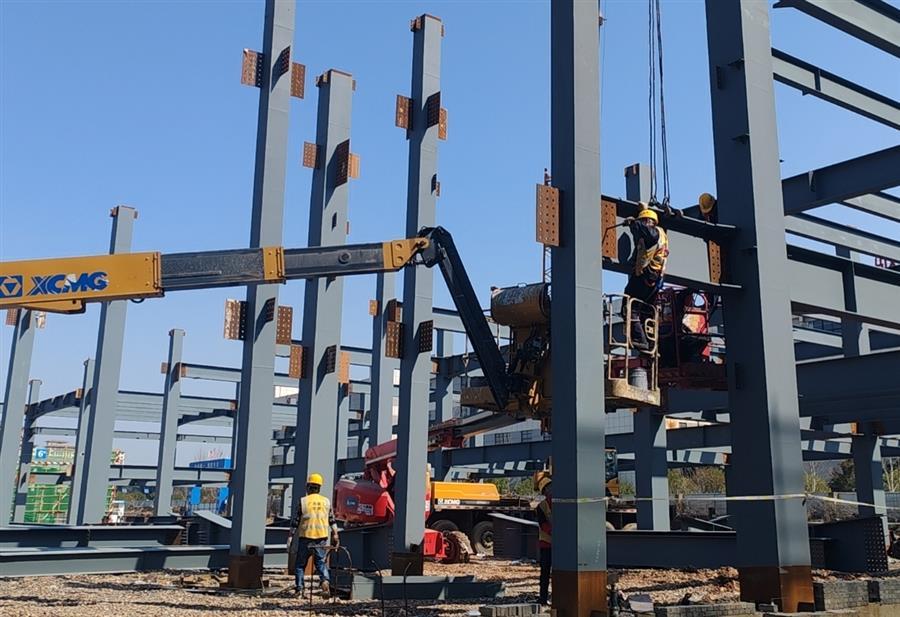 春風(fēng)浩蕩戰(zhàn)鼓急,砥礪奮進(jìn)正當(dāng)時(shí)。冶建公司第十分公司承建的區(qū)外項(xiàng)目施工現(xiàn)場(chǎng),施工塔吊林立、工程機(jī)械轟鳴、運(yùn)輸車(chē)輛穿梭,工人們?cè)诟鱾€(gè)工位忙碌,如火如荼的項(xiàng)目建設(shè)場(chǎng)景勾勒出一幅“春日大干”的施工畫(huà)卷。