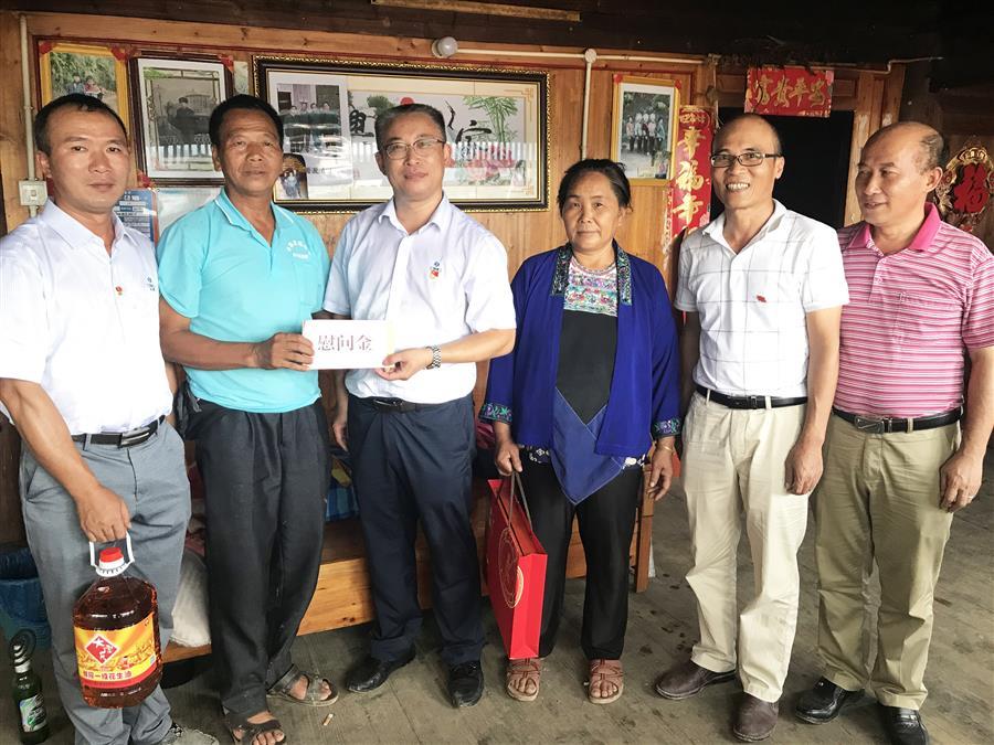 打贏脫貧攻堅戰(zhàn),冶建公司一直在路上。在中秋、國慶來臨之際,一公司三江縣洋溪玉民村烏杠屯易地扶貧搬遷工程項目部依然奮起趕工,項目各項工作穩(wěn)步推進中。9月19日,一公司經理黎建平率領烏杠屯易地扶貧搬遷工程項目部的黨員干部帶上糧油、慰問金等前往烏杠屯開展“雙節(jié)”慰問活動。
