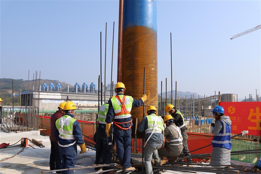 自動工以來,公司就高度重視項目的建設(shè)情況,公司領(lǐng)導(dǎo)靠前指揮、率先垂范,多次到項目調(diào)研指導(dǎo)工作。項目部在公司的有力指導(dǎo)下,積極應(yīng)對施工難度大、工期緊任務(wù)重、建筑形態(tài)復(fù)雜、圖紙變更頻繁等困難,周密組織,科學(xué)謀劃,凝心聚力,持續(xù)發(fā)揚“5+2”“白加黑”連續(xù)作戰(zhàn)精神,嚴抓工期、質(zhì)量、安全和成本管理,緊張有序推進項目施工,為燒成窯尾鋼結(jié)構(gòu)的順利吊裝奠定基礎(chǔ)。此次吊裝前,項目技術(shù)團隊對施工吊裝制定了專項方案,確保吊裝作業(yè)安全和吊裝定位精確,推進吊裝作業(yè)順利進行。