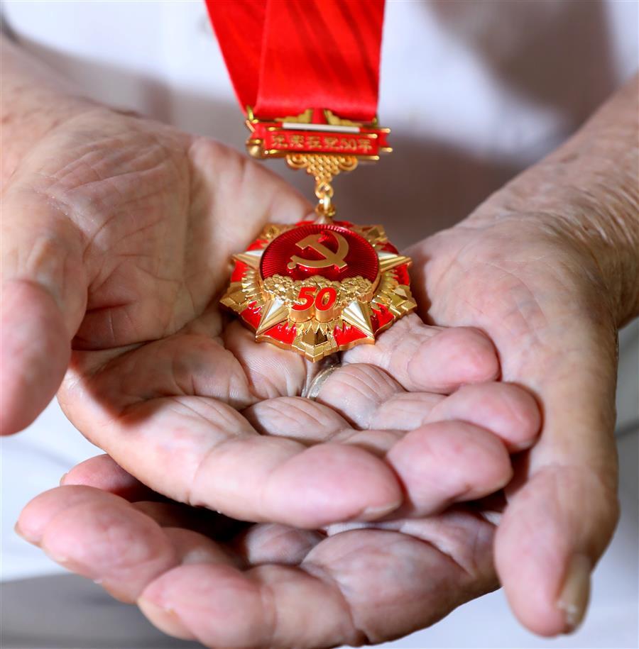 董德和,生于1930年,今年91歲。他16歲就參軍跟隨共產(chǎn)黨干革命,1948年8月加入中國共產(chǎn)黨。入伍后參加了解放戰(zhàn)爭的一系列戰(zhàn)斗,經(jīng)歷了飲馬河、長春、安陽、四川、豫西剿匪、平津戰(zhàn)役等6次大型戰(zhàn)斗及其他小型戰(zhàn)斗十多次,榮獲十余枚軍功章和紀(jì)念章?!拔胰朦h73年,黨在我心里就像太陽,我們要永遠(yuǎn)跟黨走?!倍潞驼f,不管是在部隊(duì)作戰(zhàn)還是在地方企業(yè)工作,始終不忘初心,牢記使命,為公司發(fā)展貢獻(xiàn)自己的一份力量。