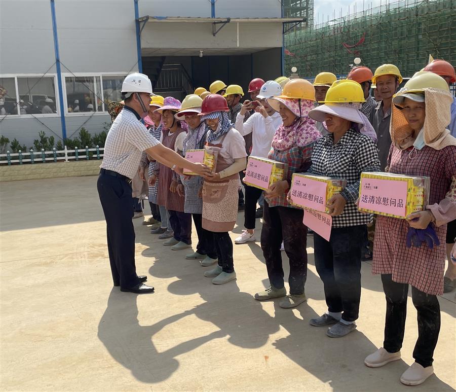 夏日炎炎,公司開(kāi)展的“送清涼”慰問(wèn)活動(dòng),讓奮戰(zhàn)在項(xiàng)目建設(shè)一線的工作人員感受到組織的關(guān)懷。另外,柳州市總工會(huì)職工服務(wù)中心到公司的兩個(gè)項(xiàng)目開(kāi)展“送清涼”活動(dòng)。