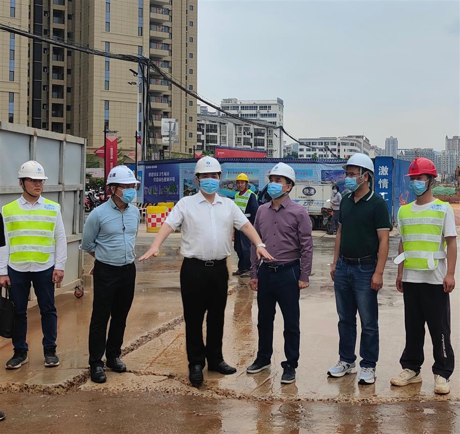 4月15日,冶建公司總經(jīng)理、黨委副書記蒙勝益到桂華分公司承建的南寧軌道交通5號(hào)線廣西大學(xué)站至廣西財(cái)經(jīng)學(xué)院(廣財(cái)區(qū)間)地下空間利用工程項(xiàng)目市政配套工程調(diào)研指導(dǎo)。