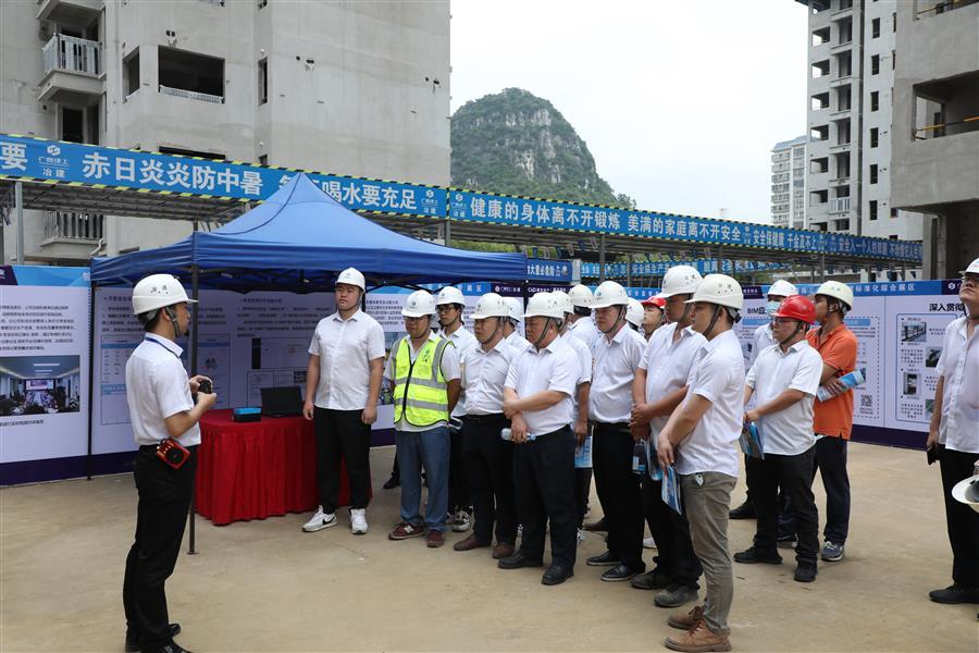 6月15日至17日,冶建公司在第四分公司承建的磐龍府項(xiàng)目舉行2022年“安全生產(chǎn)月”質(zhì)量安全管理標(biāo)準(zhǔn)化觀摩會暨“安全生產(chǎn)大家談”活動。公司董事長、黨委書記覃振華,總經(jīng)理、黨委副書記蒙勝益,副總經(jīng)理、總工程師廖立波,副總經(jīng)理唐峰,副總經(jīng)理、安全總監(jiān)何勇參加。